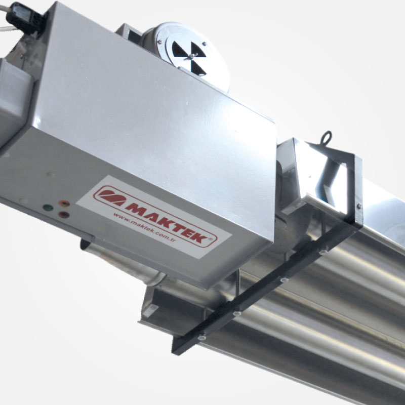 MAKTEK Radyant ısıtıcı ile brulörün yaktığı gazın, sistemin ucundaki vakum fanı ile emilerek borunun içerisinden dolaşması ve soğuduğu noktadan dışarı atılması sağlanır. Bu sırada radyant borunun içerisinde dolaşan gaz, ısısını boruya bırakır. Radyant borunun dış yüzey sıcaklığı ortalama 300 °C’ye ulaşır. Borudan yayılmaya başlayan ışınım üzerindeki reflektör vasıtasıyla aşağıya yönlendirilir. Havadan etkilenmeden yönlenen ışınlar, cisimlere ( makine, insan, zemin, vs.) çarptığı anda ısı enerjisine dönüşür ve ısıtma başlamış olur.