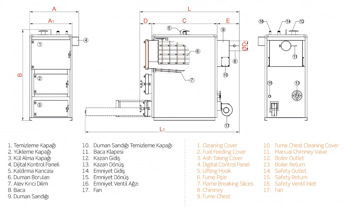 YAKIT ÖZELLİĞİ Kömür, odun ve alternatif parça yakıt yakabilme,