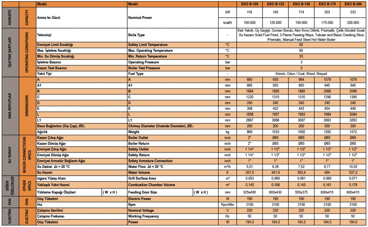 Katı Yakıtlı Merkezi Sistem Kalorifer Kazanı 3 Geçişli Alev Kırıcı Dilimli&Borulu Prizmatik EKO B