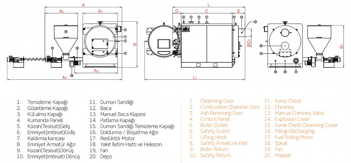 2 geçişli duman borulu yanma sistemi, |