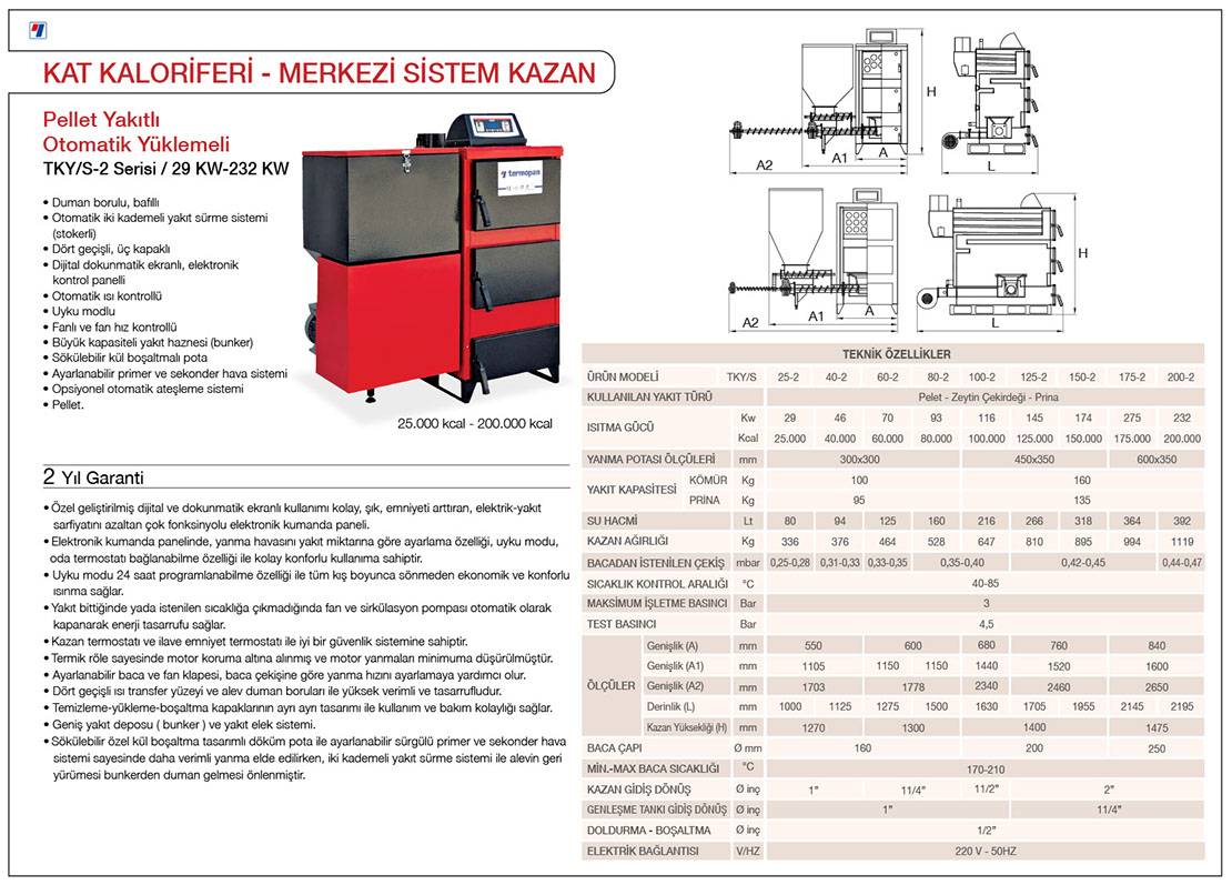Pellet Yakıtlı Otomatik Yüklemeli TKY/S-2 Serisi/29 KW-232 KW
