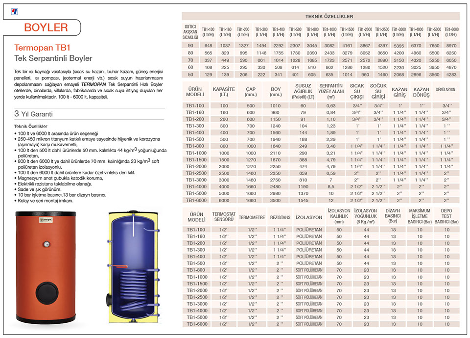 / Termopan TB1 Tek Serpantinli Boyler